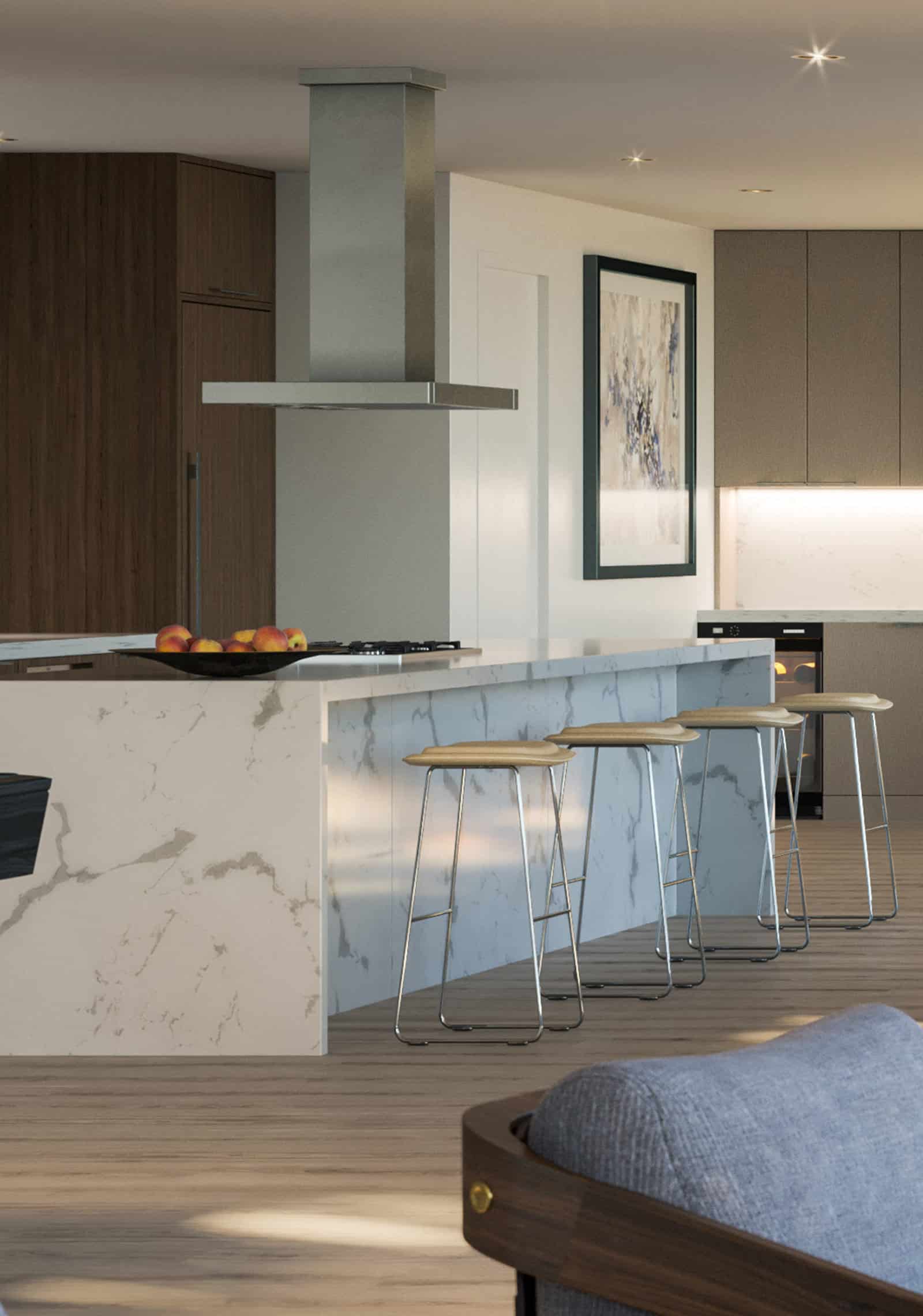 Ascend to the top floor of 188 West St James to access the penthouses, exclusively available in spacious two- and three-bedroom floor plans and featuring a sleek collection of upgraded finishes. Stainless steel Miele appliances including two ovens, wine chiller, European cabinetry, custom-designed stone countertops, a Kohler bidet and more—define these premium dwellings, inviting lives extraordinarily well-lived.
